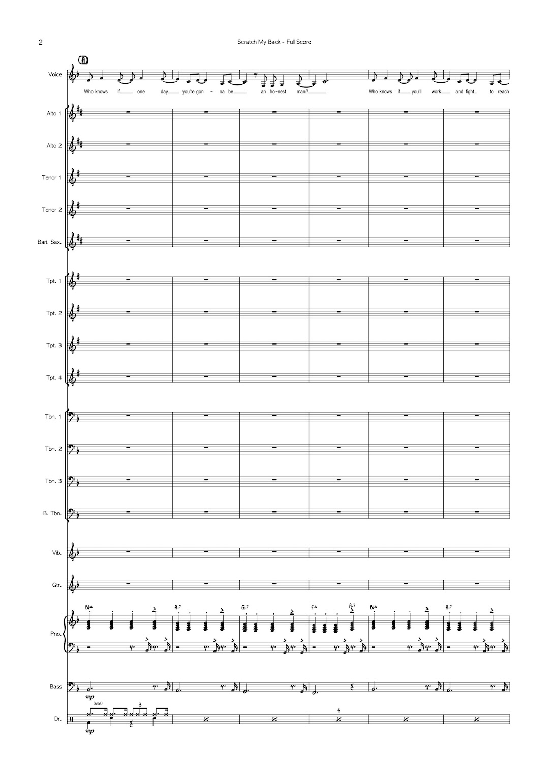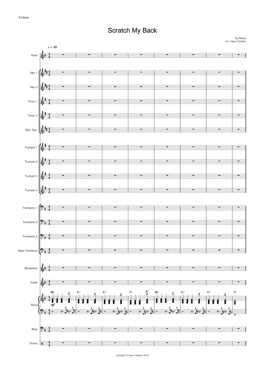 Instrumentation: AATTB, 4 trumpets, 3 trombones, bass trombone, vibraphone, guitar, piano, bass and drums