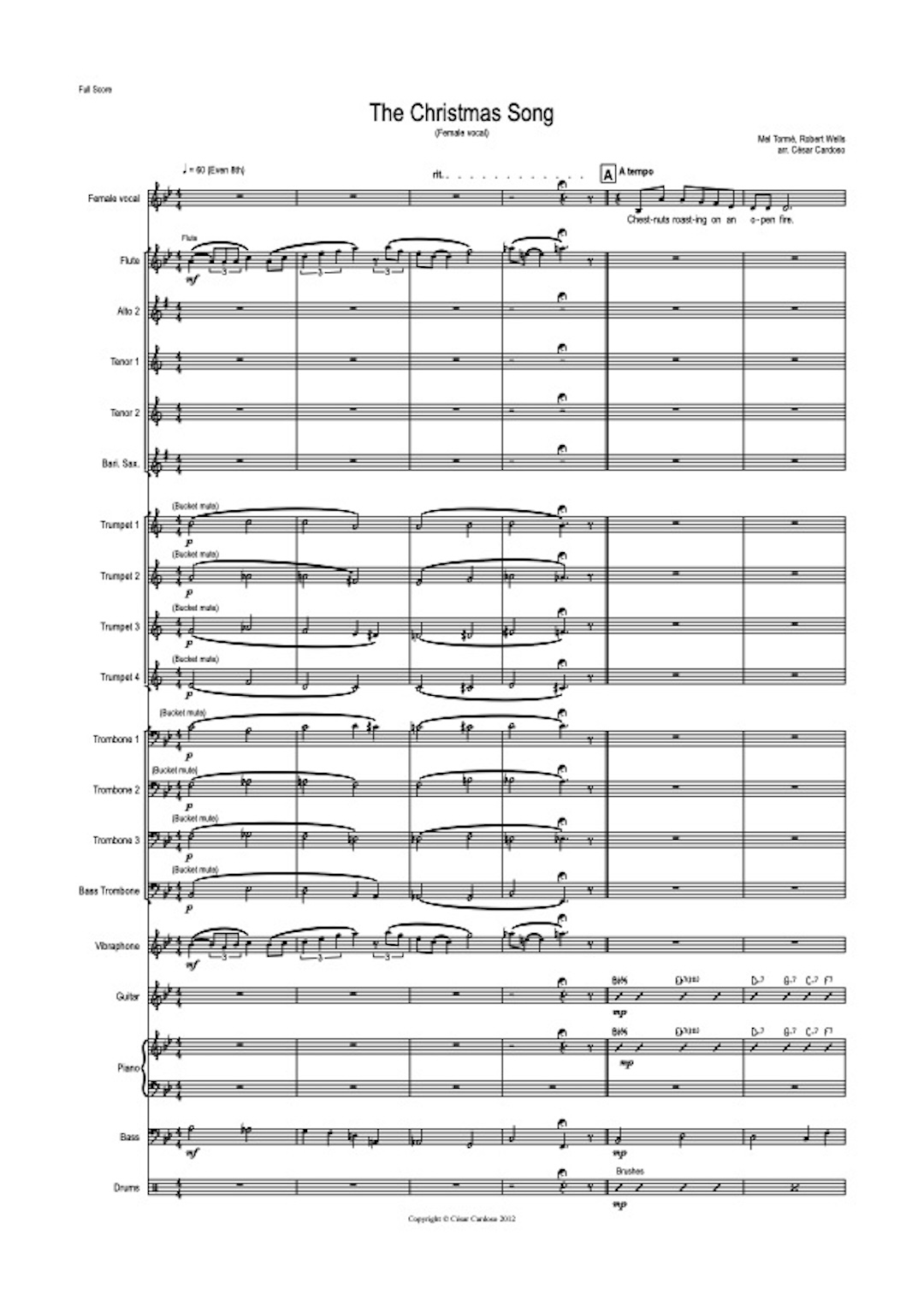 “The Christmas Song” by Mel Tormé and Robert Wells, singed by Nat King Cole, arranged by César Cardoso