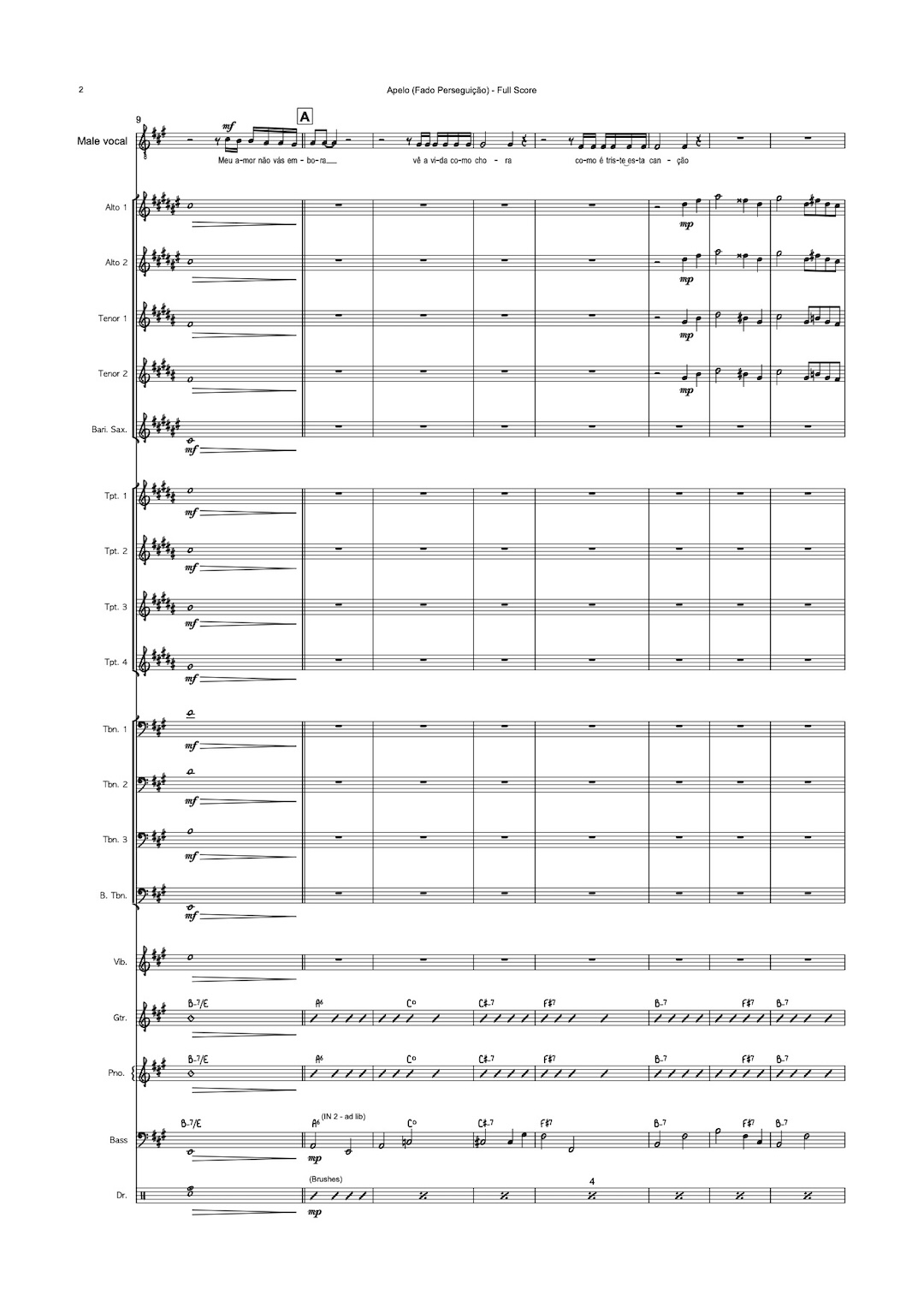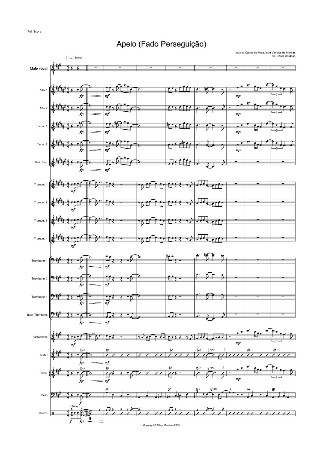 Descrição: Arranjo para voz masculina em Lá maior e tem solo de saxofone alto