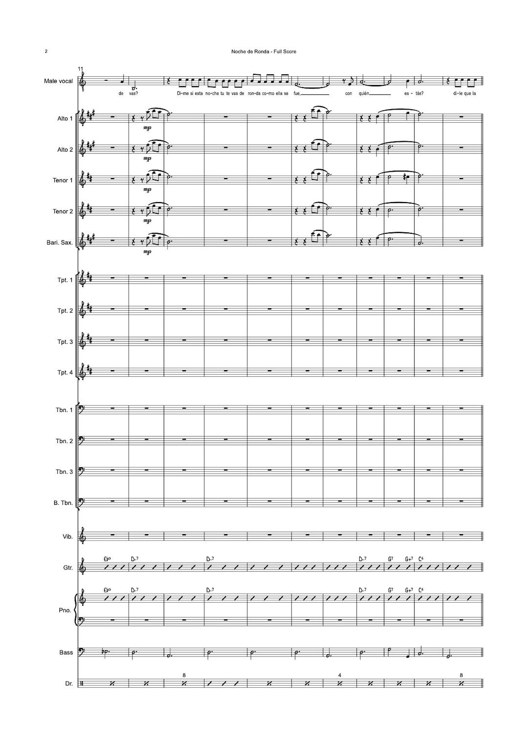 Instrumentação: AATTB, 4 trompetes, 3 trombones, trombone baixo, vibrafone, guitarra, piano, contrabaixo e bateria