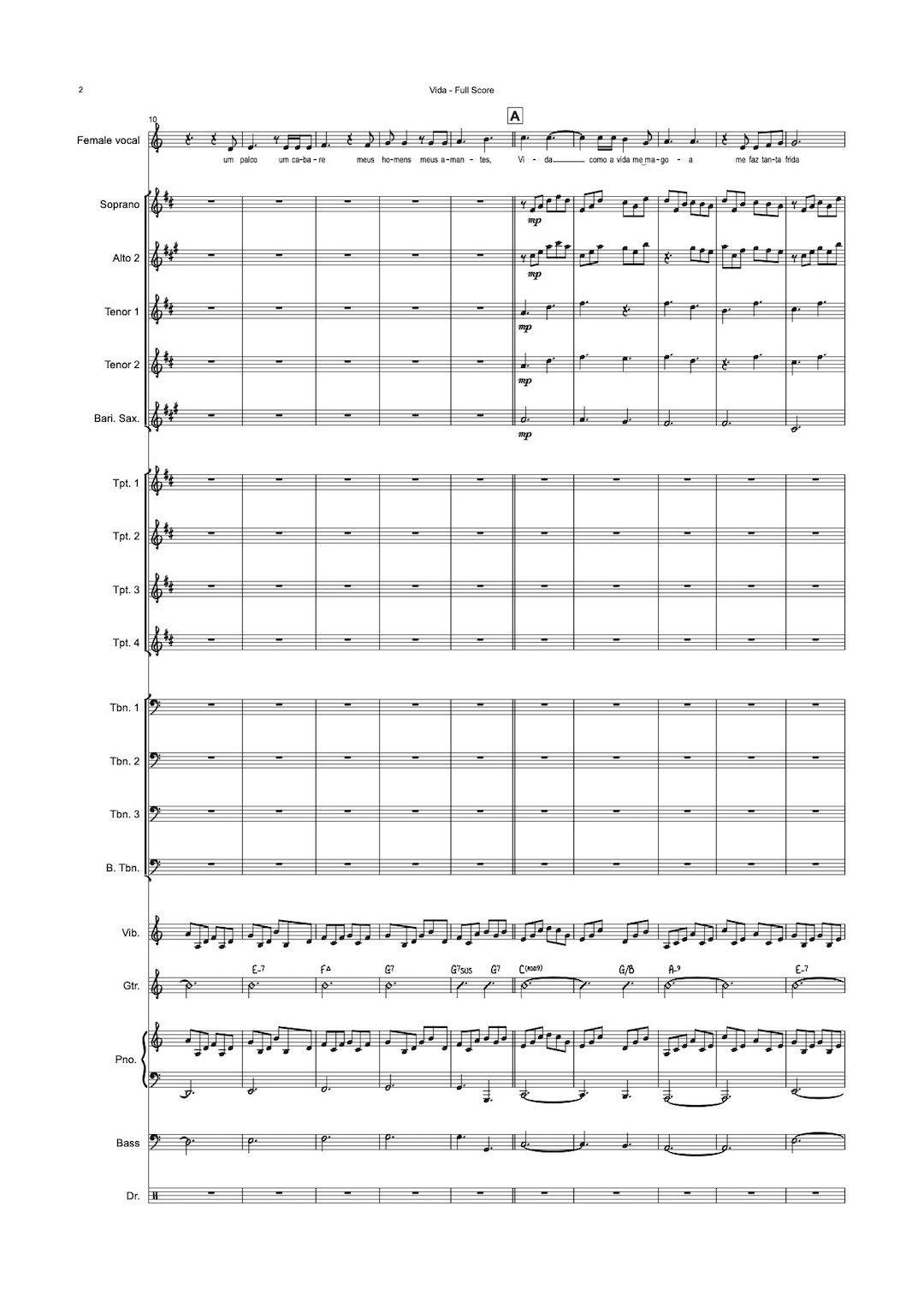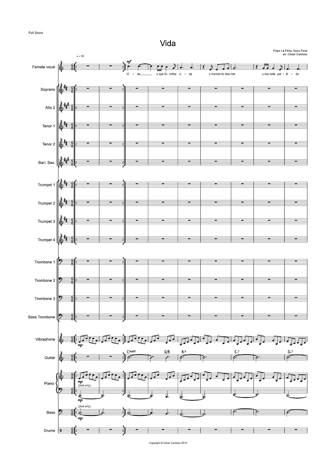 Instrumentação: SATTB, 4 trompetes, 3 trombones, trombone baixo, vibrafone, guitarra, piano, contrabaixo e bateria